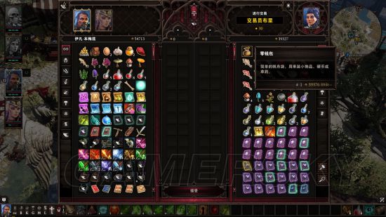 后来买东西的时候发现商人身上有几万金币,但是却看不到金币在哪里,给他东西他也不能拿出金币来,然后注意其中一个袋子价值几万,所以猜测商人把钱装到袋子里面去了。