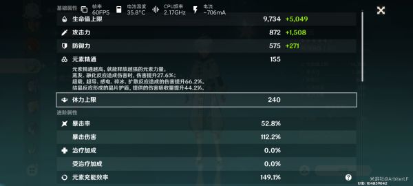 如上图,在我这个面板下,不吃任何buff,不触发反应,则为暴击11200伤害,不暴击5200伤害。
