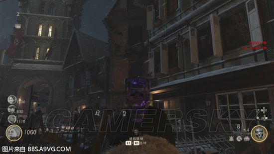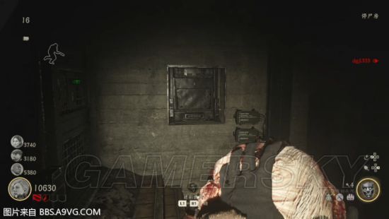 打开这个开关,电闸左边的电路板会打开,这个时候使用升级过的特斯拉枪射击它会使建筑短路,此时前往附近的两个电路箱可以用火焰僵尸的头部照出来血色密码。
