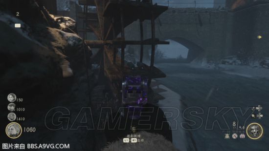 5.前往河边水车边上可以找到一个信标,和信标互动他会转动,最后会指向一个方向,在它指的方向上会找到一个很小很小的黄点,射击后水车会转动,等水车停止后来到下层看水车的页片上有两个像炸弹一样的东西,用升级过的特斯拉枪射击。