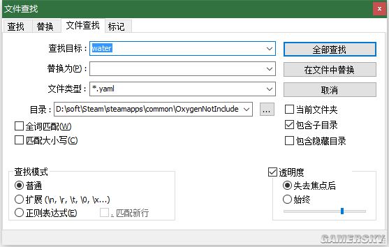 查找目标填写WATER,目标类型填写*.yaml