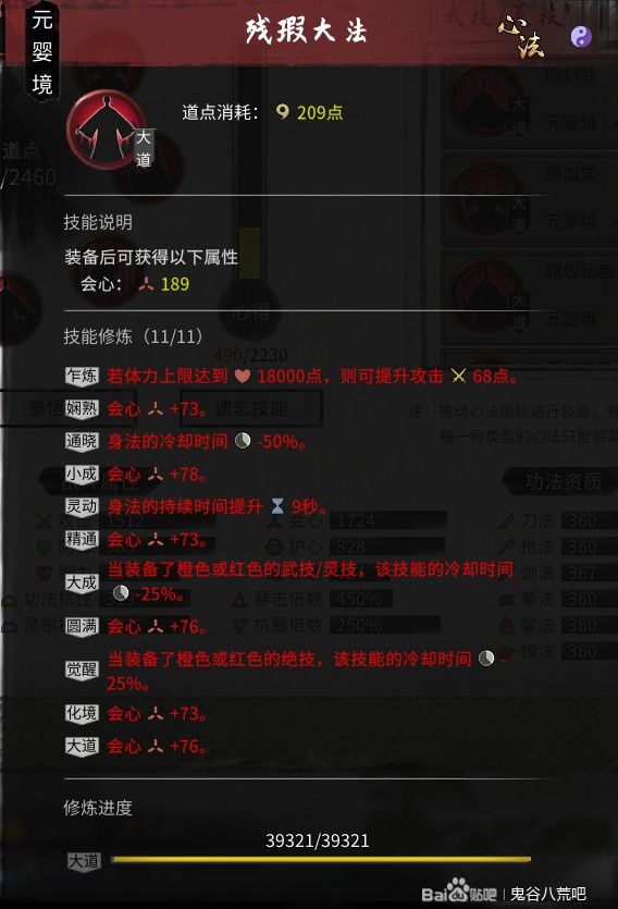 4.额外补充说明:对于剑修来说,即便你没有很好的输出手段,你的减cd不高,但是只要利用剑修的流血机制快速刷新狐火,就可以用身法当输出技能,基础7W,增伤后第二次装击就差不多是20W,如果你5秒内撞了第3次,伤害就更高了