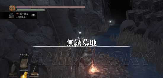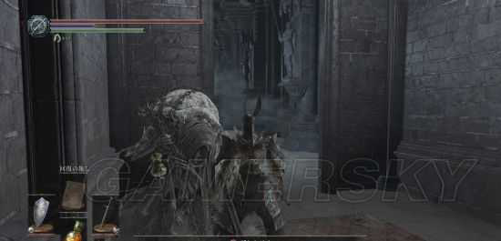 之后击败里面的BOSS继续向深处前进来到黑暗的火祭场,在角落里砍墙壁打开隐藏门,找到关键道具“火防女的眼球”后。