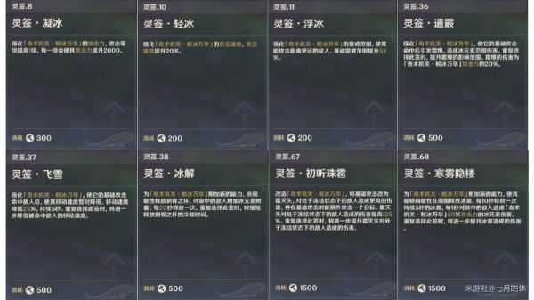 永冻流,灵签选择,主要也就是水、冰了,下面是主要灵签选择,主要就是选择加攻击、提升范围、伤害提升、附(水/冰)、减速等,其中水泡、冰雾很舒服。