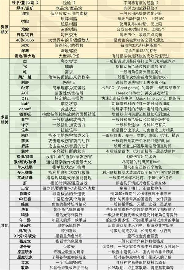 正文 2025年《原神》常见黑话术语解释 游戏热情 /2025-11-18 20:44:00 /3 浏览量 1118 《原神》有着很多的玩家,游戏中的一些内容也被缩减成一些方便传述的一些黑话。下面请看由“坤易”带来的《原神》常见黑话术语解释,希望对大家有用。 div >基础篇 容华淡伫,绰约俱见天真。 -- 展开阅读全文 --