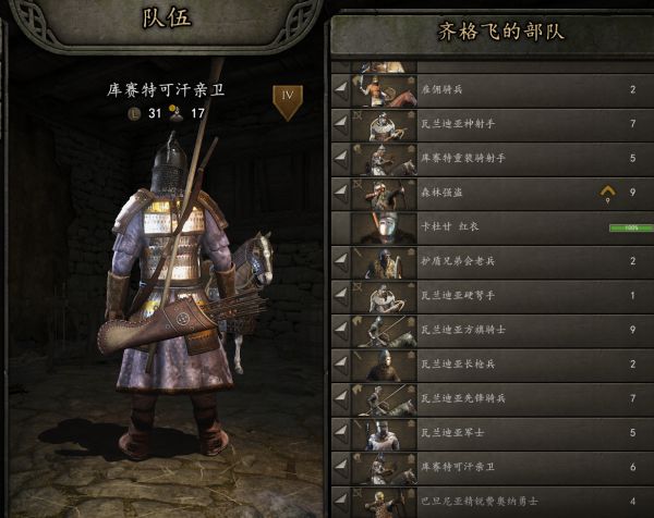 瓦兰迪亚的步兵不配盾没投掷,不推荐用,可以培养少量军士反骑,而且可以升级平民重骑兵和瓦神