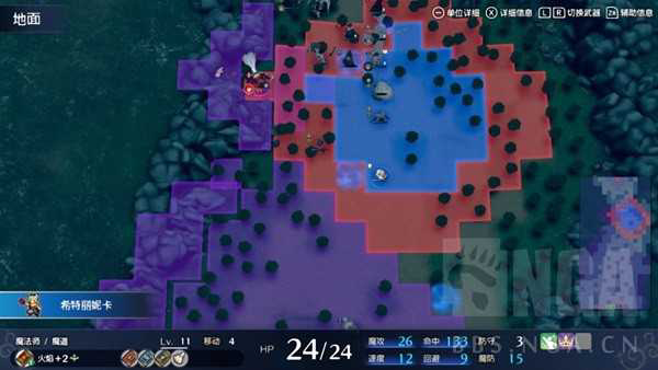 这回合后面人跟不上还是调整一下站位,正太守一下艾比,让他切到近战武器,我们两格单位就可以白嫖了,但是这回合还是收不掉他,我选择先处理掉下面的法师,留一个骑兵,琪姬给路易复活,路易站中间,直接吸两个仇恨,下回合随便打打就清了