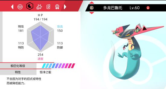 反威吓,极巨飞提速,顺风掩护队友。极巨飞跟班吉拉相性很好,因为极巨飞的加速马上生效,能让班吉拉或者伊布瞬间超速一些中速队友。极巨格斗是为队友加攻击的,但大部分时候都在极巨飞无脑提速。
