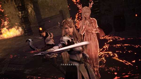 4位英灵分别是电(骑士)、冰(商人)、火(女巫)、光(公主)属性,可以为其设定一个战技和一个技能(想要更改的话需要完成对应的个人任务来获取),召唤英灵需要消耗蓝条,可以召唤多位英灵,玩家可以选择把武器的攻击类型切换为已召唤英灵的对应伤害类型——意义在于本作中怪物存在着弱点武器与弱点伤害抗性,使用克制的伤害类型和武器可以快速打满晕眩条,晕眩的怪物会停止行动同时受到的伤害会增加(对于BOSS也是有效的)。配合克制怪物属性的武器与英灵以外,还可以使用对应属性的战技——战技可以直接把杂兵打出晕眩,多次战技可以把精英打出晕眩,此外战技条还可以用来回血治疗(否则就只能靠怪物掉落治疗球,或者是靠箱子里拾取的治疗药剂了)。