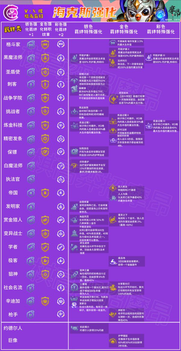 战斗学院:增强,4羁绊双攻增加5点,6/8羁绊额外双攻大幅度增强,提升较为明显特别6/8羁绊下,全员双攻增加快速1轮技能释放后,全员棋子提升一个档次。另一方面如果有战斗学院转职,阵容提升会更大,预计学院永恩与学院拉克丝阵容玩家选择会增加,