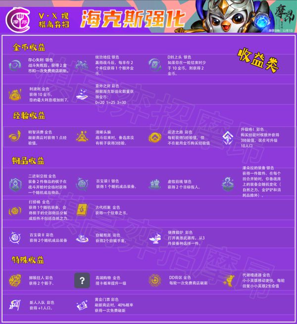 解读:这波改动非常的大,小部分是增加金币,大部分海克斯魂地效果直接变成2个纹章,对某些阵容来说提升巨大,如拥有人人为我帝国阵容,能增加2次人人为我地效果,而格斗家魂,可给两枚棋子增加高额血量,增强坦度,如狙神魂,2个转职能让2枚棋子极大增加输出能力;但这次改动也有让版本更平衡地地方,如挑战魂,之前最快6人口能开出8挑战阵容,而现在一定是需要8级才能开出8挑战,阵容成型难度加大,在中期不会直接出现大彩色羁绊阵容。