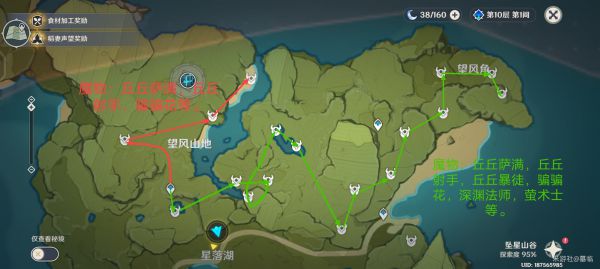 自己做了几张刷怪路线,就是不知道怎么样,如果只是单纯刷怪,消耗时间也不算多,蒙德三四十分钟吧。