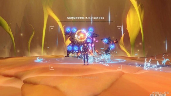 标准效果:随机在被捕破绽的敌人的位置产生3个波纹领域,每1秒对范围内的敌人造成一次水元素伤害,每个波纹领域的持续时间为5秒,优先攻击被捕获破绽大于2个的敌人。