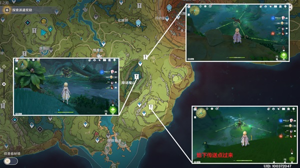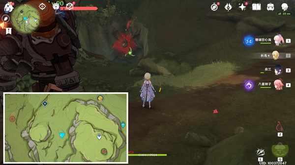 5,用火元素角色(安柏)攻击石锁,解除封印,再击败小宝