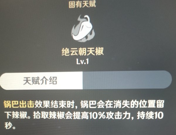 很不错的一个提升输出手段的辅助技能,而且重点是在你切换角色的时候捡起这个辣椒也可以享受到伤害加成,关键这个辣椒在地上时间可以持续很久和锅巴可以做到无缝衔接。