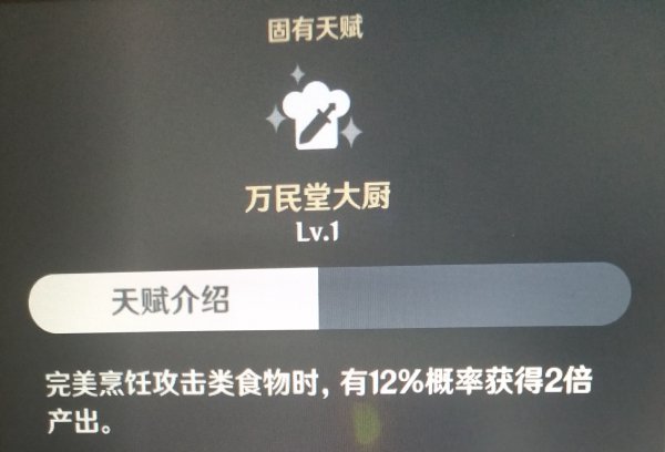 做菜辅助技能,其实我觉得这12概率对于脸黑的人来说等于没有,去你所谓的大厨。
