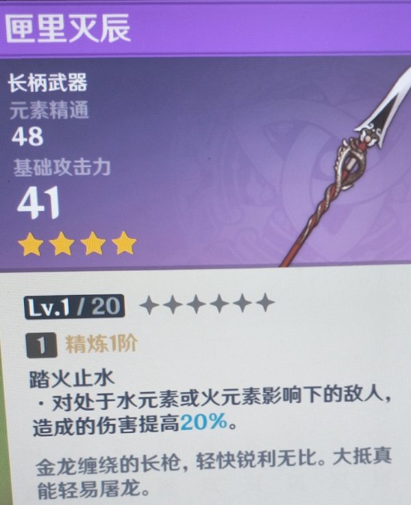 这个是打工具人香菱用的四星武器,毕竟副属性加元素精通,出来丢个锅巴就走补一下伤害,。