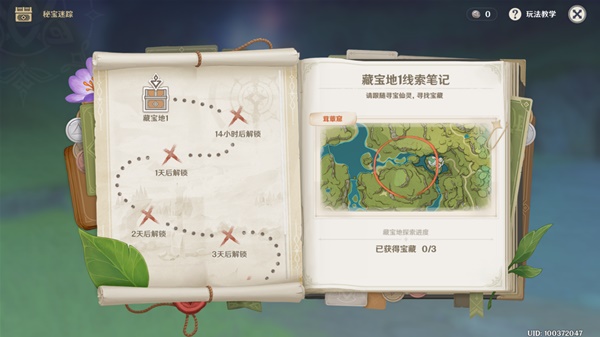 每处藏宝地共三个宝箱,开启每宝箱前,需要先寻找到三个元素微粒