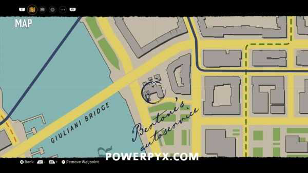 ③前往位于地图上“Downtown”的“Bertone's Autoservice”,从正门进去。