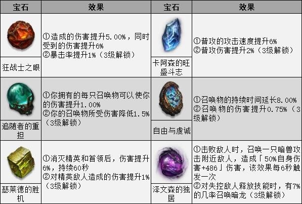 注:下方的宝石效果仅是其基础效果,宝石的加成数值会随着等级的提升而提升。