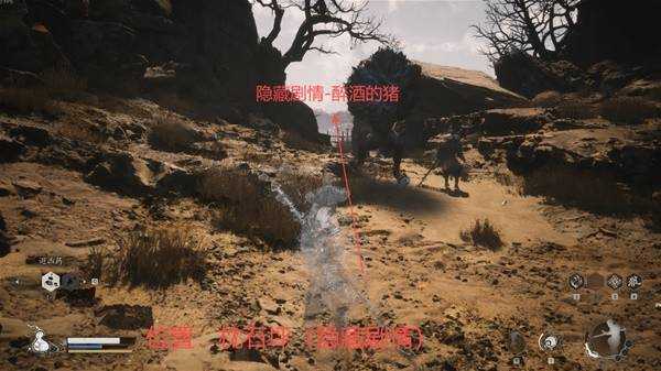 隐藏剧情+Boss:回枕石坪找猪→隐·斯哈里国→打“虎先锋”→沙漠边【打坐蒲团】→和敲鼓的黄鼠狼对话→打蝜蝂→得到【法宝】定风珠→进入枕石坪流沙瀑布,打小骊龙(隐藏boss)→回第一关“苍狼林-林外”,进入瀑布打赤髯龙(隐藏boss)。
