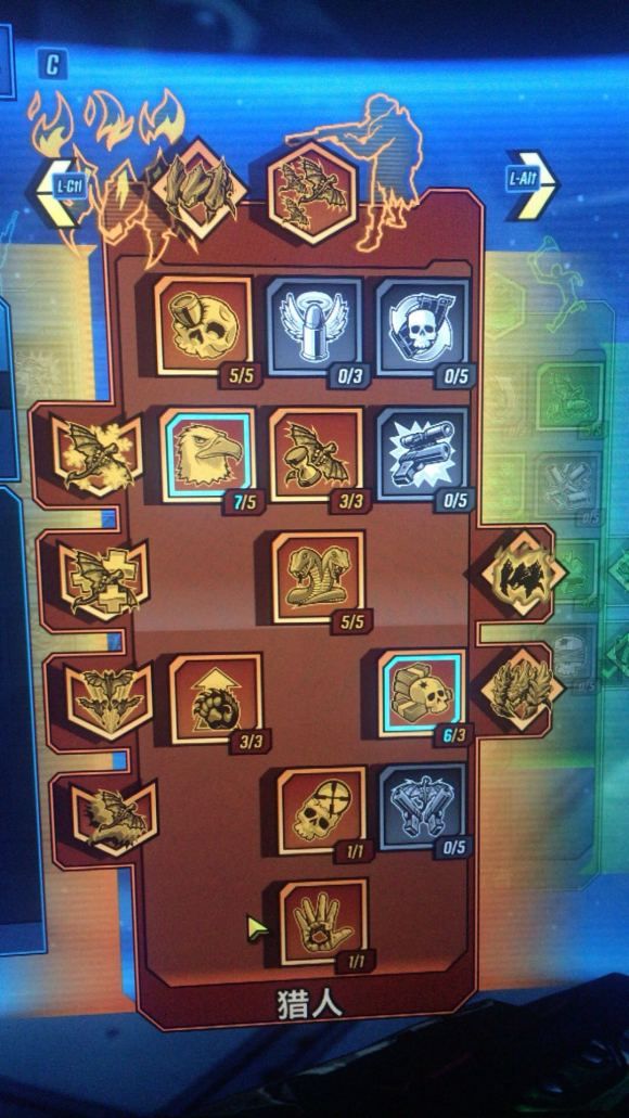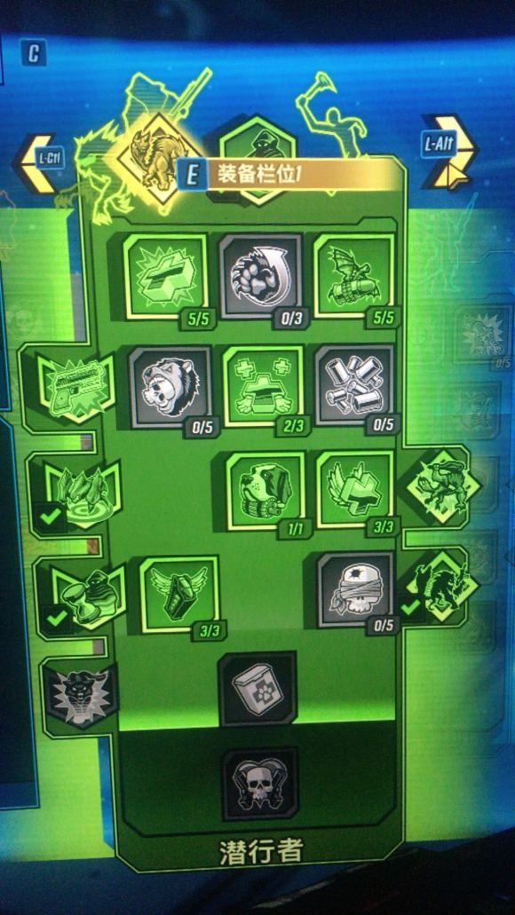 这是技能加点,其中红系清点人数和凶暴是我们无限隐匿和恐惧的核心,基本上玛吉打两枪就刷新技能了。蓝系的耐力猎人我是多余出来的3点就加给它了,绿系的隐藏机器和内力无穷不点,因为我们不是靠主动技能作为主要输出的。3个主动技能我们为什么选择隐匿呢?蓝系伽玛持续时间太长,无法更多的触发恐惧效果。红系飞龙太鸡肋,没伤害且回血少。而绿系隐匿既可以切离子炮爆炸输出,又可以快速脱离战场回血,技能时间短,可以更快触发主动技能失效的恐惧效果。