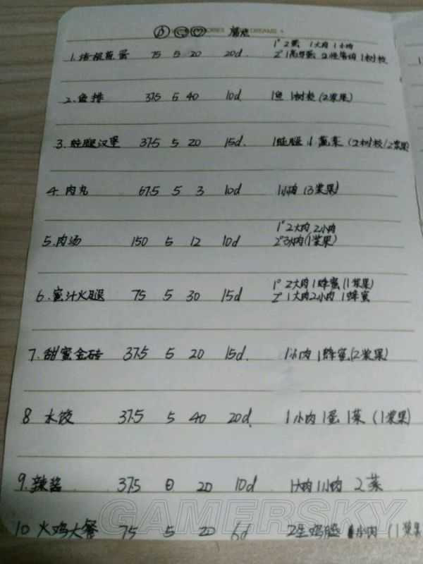 13、另:饥荒有用食谱分享:见图,纯手写,左肉类,右蔬菜类