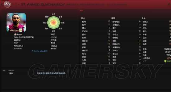 英冠阿斯顿维拉的边前卫,常年混迹于英超英冠,效力过桑德兰,赫尔城等球队,从履历上看是一名实用型球员,速度不错(双15),传中能力出色(17),将是埃及主要的边路攻击手。