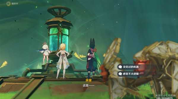 7.关停地脉抽取装置,用草元素攻击众叶觉蕊,就会出现四叶印,飞上去。