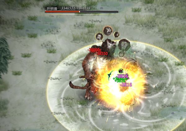 测试怪物选的是沙漠里的开明怪,boss的转转斧打我3816,反伤38550,吸血3816,完美循环。