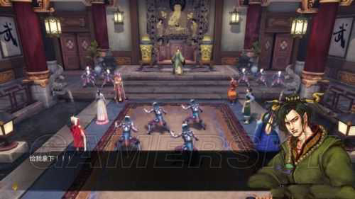 step3.此时要面对大批的教众,先缩在大殿宝座前不动,等待教众自行走过来,第三回合,宫夕瑶就是登场。