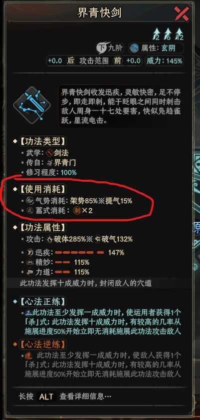 气势消耗 分为架势和提气,这两个的恢复效率的跟人物界面的《次要属性》架势恢复,提气恢复有关。