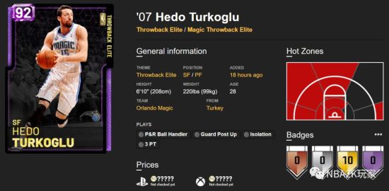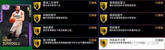 这张卡模型非常突出,3号位208CM的身高很占便宜,进攻端投射能力相当不错,所有小项都给到了90上下;内线得分能力过关,近距离、上篮、扣篮、背身虽然不高,但都能用;持球能力也在线,86的控球+83的运速,是不是有点进攻万花筒的味道。