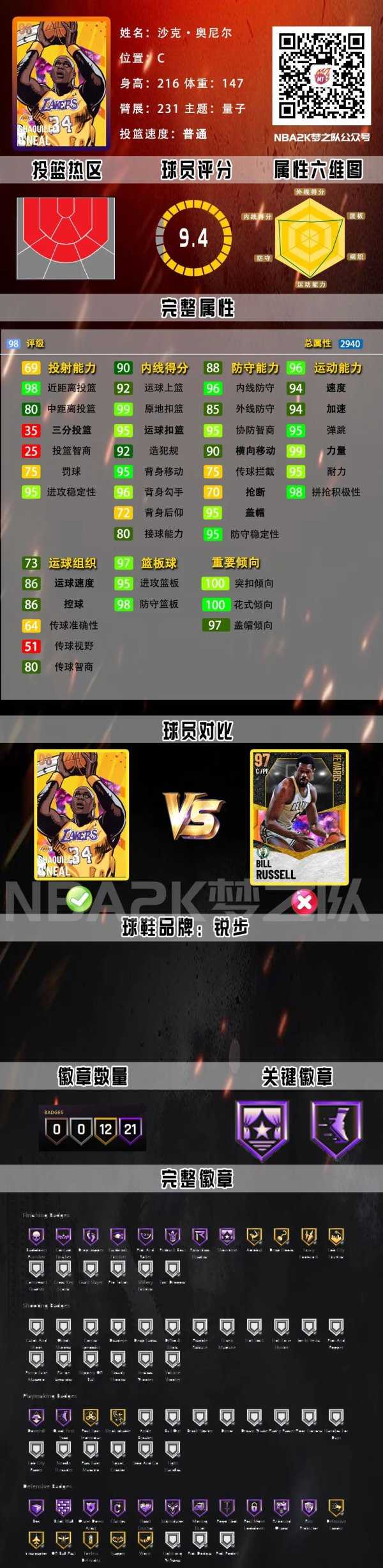 这张98银河大鲨鱼的优缺点都非常突出,至于优点就是他拥有堪比后卫的94双速以及最强的内线终结能力,而且还拥有紫色第一步和转换大师,简直就是一辆“飞驰的重型坦克”。而缺点当然就是毫无三分能力,说实话这年头想找到一个像这样完全不能投三分的中锋都很难了。反正银河奥胖就是这么的泾渭分明,要不要买完全就看你个人的喜好了。