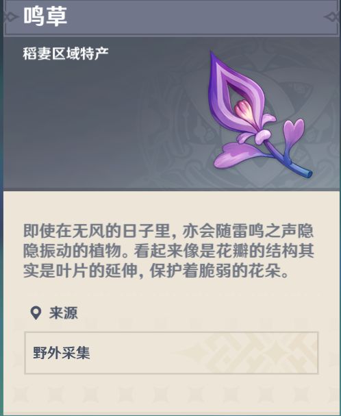 描述:鸣草喜欢长在有雷祸的地方,所以有雷祸的地方才有。