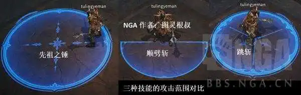 前期通用的选择,疾奔+旋风斩+先祖之锤+跳斩,跳斩也可以换成顺劈斩打多点输出,需要注意的是顺劈斩只能攻击前方的一个小范围,没有跳斩大范围、灵活