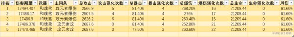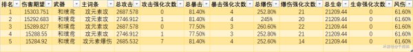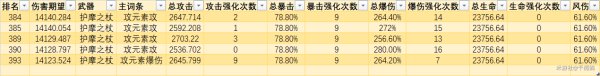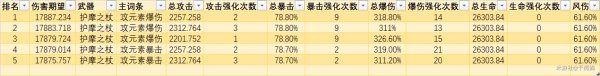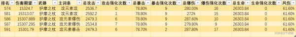 护摩之杖排名有所提升,但是前几名依然并未在圣遗物副词条上加成任何生命值