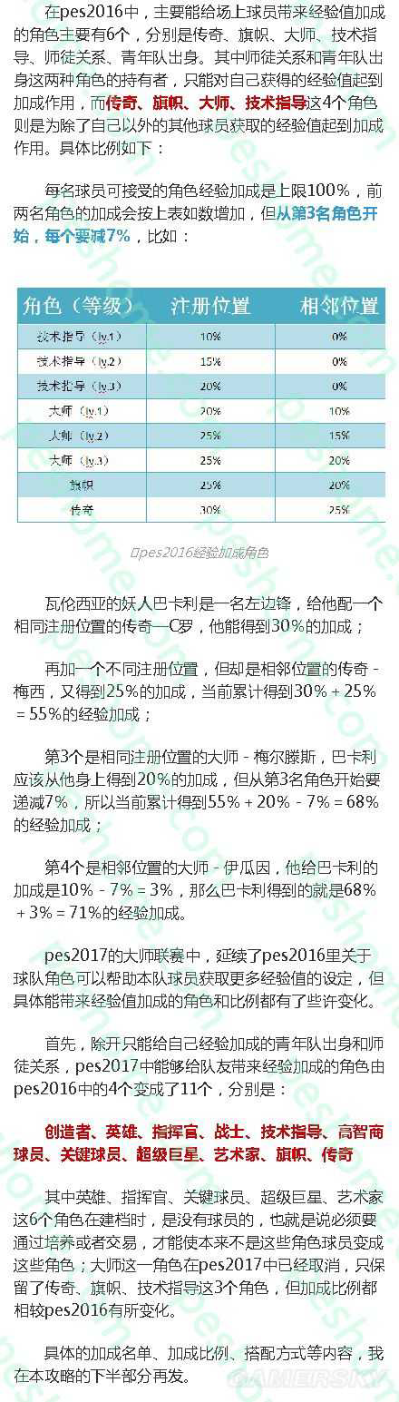 《实况足球2017(PES2017)》经验加成角色有哪些?很多玩家都不是很了解,下面小编就为大家带来《实况足球2017》大师联赛经验加成角色一览,希望对各位玩家有所帮助。