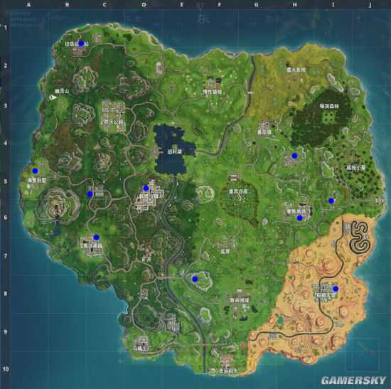3.在单局中搜索7个弹药箱,红点为建议落点(ps:具体还是要看各位的航线)。