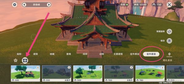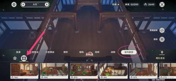 室内与室外均可摆放赠礼套装 在摆设界面找到室外套装 然后“宝箱”图案 就可以找到赠礼套装啦! 友情提示:蓝的图纸是室外套装红的图纸是室内套装噢~