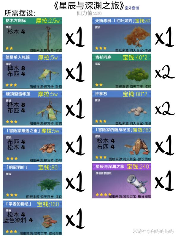 *共需摩拉:17.5w(需前往提瓦特购买图纸)