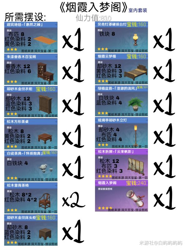 在这次更新中 阿圆的洞天百宝里「摆设图纸」这一栏中新增了一些套装图纸哦⊙∀⊙! 购买图纸后在背包中找到并使用就能解锁对应的「赠礼套装」啦~ (这也是目前版本中唯一可以获得「赠礼套装」图纸的途径喔)