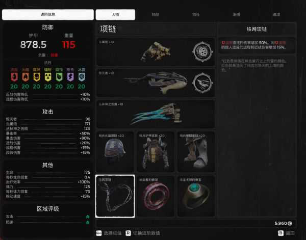 铁网项链+放血者的徽记+炼金术师的珠宝,都是雪原DLC新装备