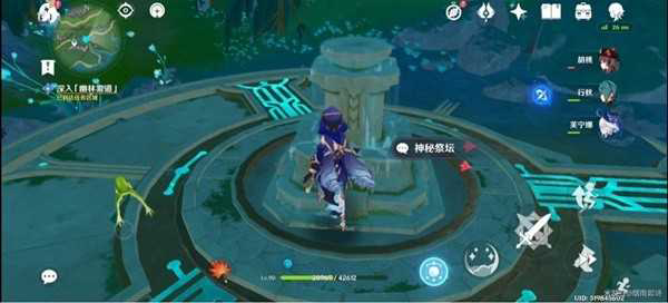 随后我们传送到幽林雾道的传送锚点,往地图西南方向走,找到神秘祭坛调查