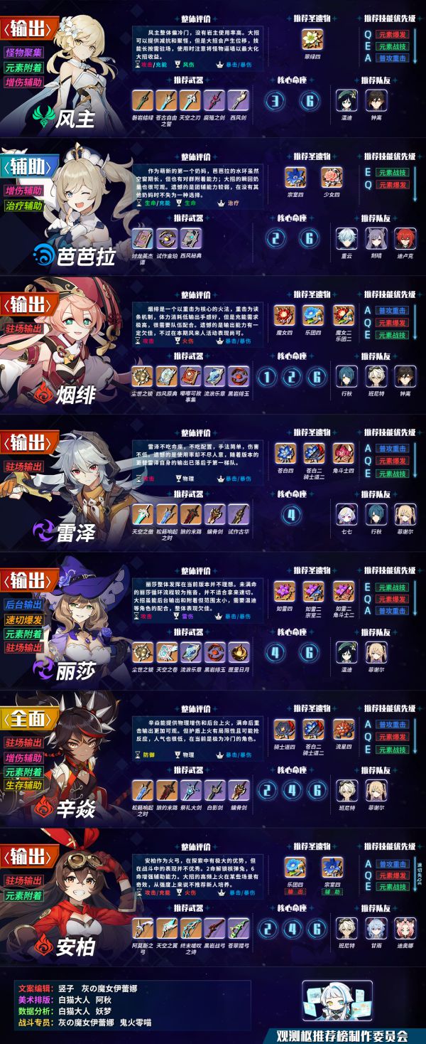 关于少数玩法:再三斟酌后,我们决定删除了班尼特主C带魔女4的玩法,不是不能玩。其实还蛮强的,只是不是主流,还可能会误导新人。物理钟离也是同理。