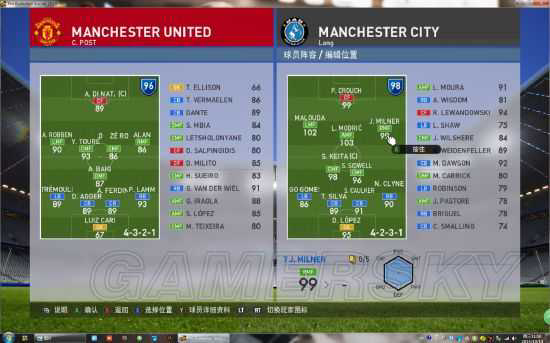 颜色越浅代表适应性越差,一个位置适应性基本无色的90+球员,场上表现远远不如一个颜色大红的70+球员,这点我已经反复通过比赛验证过了。当然,如果你非要单就拿球个人突破等表现来说话的话我也没办法,我说的都是我自己的血的教训。还记得当初,我的主力门将受伤,然后正赶上联赛德比对阵曼联。