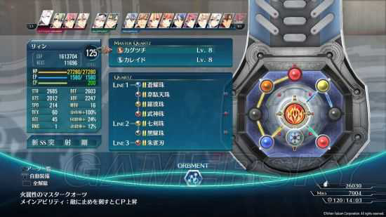 注意,リィン、クロウ、フィー三人请分开装备上真斗魂腰带或主核心火属カグツチ(这样CP才跟得上)。