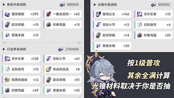 一旦你决定抽取星期日,那么也该提前准备相关的培养计划了。当前可准备的有以下内容:材料、遗器。光锥在角色实装后冻梨会重新给出优先级排列~