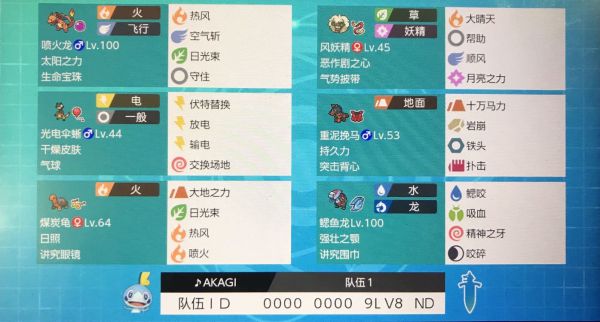这其实不是一个标准的晴天队,因为喷在吃一发非本大岩石都会gg的情况下需要一定的手段保证生存,在前500打的那会儿我最常使用的还是蜥蜴和喷的开场,可以抗电磁波以及各种ohko技能。