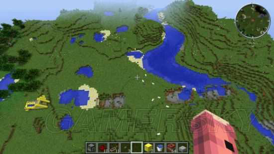 当然,不一定要铁块,别的也行,先用方块搭一条11格长的线,(不同颜色方便你们数),然后在旁边往下挖一格深7格长,再把两头改一下。